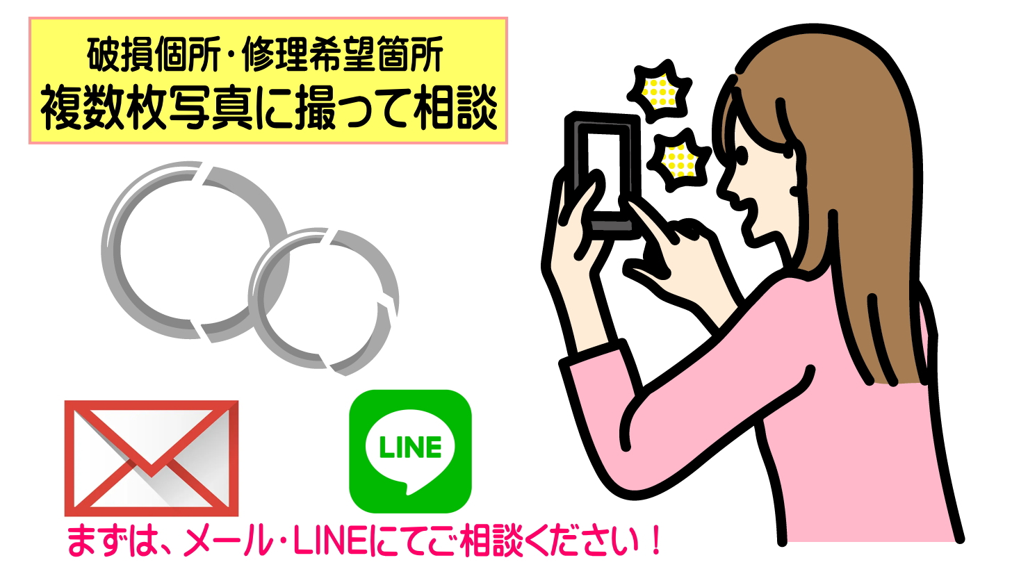 お客様がお持ちのジュエリーを複数枚写真に撮っていただき、どの様に修理したいか、またどの様にリメイクしたいかメールで送信!!お気軽にご相談ください。
